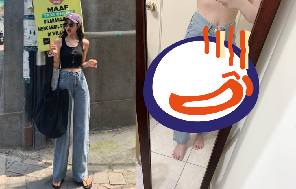 網路購物最怕的就是實品與照片不符,一名女網友日前在網路上買一條牛仔褲,模特穿起來比例相當修長,是一件偏寬鬆的落地褲,腿一秒從胸部以下延伸到地面,讓她看了十分動心,所以手刀下訂,怎料收到實品後,讓她傻眼到懷疑自己變「侏儒」。