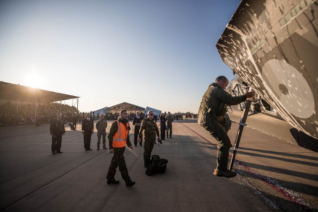 這架戰機是從義大利總裝檢驗(Final Assembly and Checkout ,FACO)出產的,荷蘭在10月時購買了9架F-35A戰機。擔任駕駛的第323測試評估中隊指揮官奈特(Ian Knight)走出戰機,與現場政府官員以及民眾打招呼時,身旁的飛機不斷滴下泡沫,畫面相當有趣。