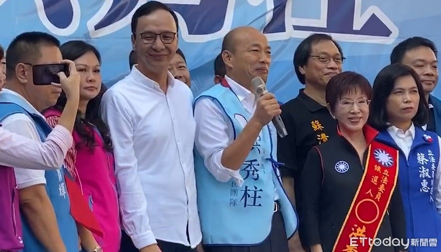 ▲立委洪秀柱競選總部總幹事、前立委高思博(右一)號召選民,以選票留下柱柱姊為台南服務。(圖/記者林悅攝)