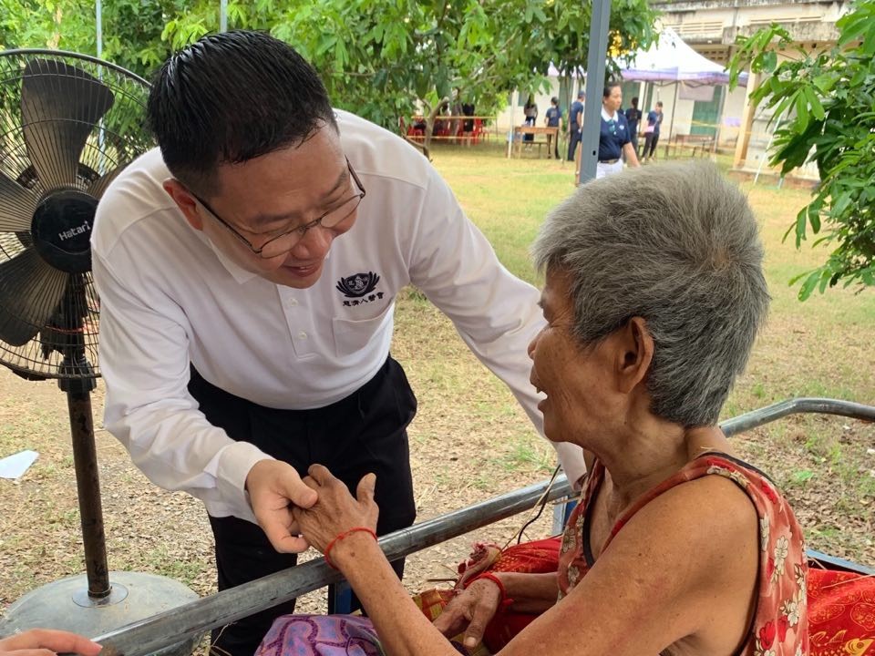 ▼ 馬來西亞王玟富醫師(左)為老奶奶針灸治療,老奶奶發現自己可以說話,不斷向王玟富醫師道謝。(圖為慈濟基金會提供)