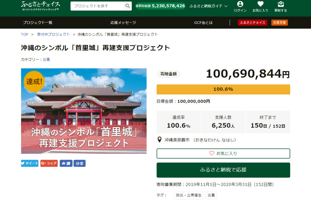 募款網站資料顯示,捐款人數為6250人,目前達成率已來到100.6%。許多民眾在應援欄位提到,「衷心祝福沖繩象徵首里城可以早日重建」、「請朝著重建的方向加油」。