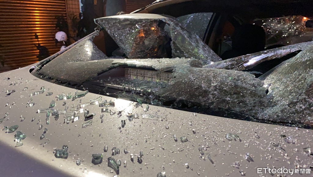 ▲轎車多處車窗被砸碎。(圖/記者游宗樺攝)