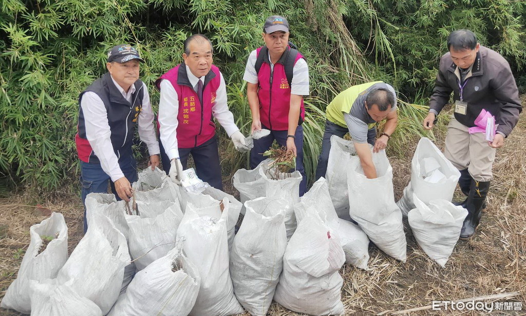 ▲鄉內被偷倒袋裝廢棄物,五結鄉鄉長沈德茂(上圖左2)要嚴辦不肖業者。(圖/記者游芳男翻攝,下同)