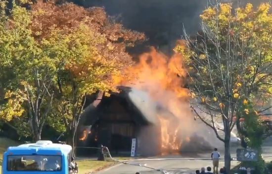 綜合日媒報導,眾多網友在推特連連PO文指出,以「合掌村木屋」成為世界遺產的岐阜縣白川鄉荻町地區下午傳出火災,不僅火勢之大,吞沒整棟木屋,濃煙也竄升天際,甚至有爆炸聲響,景象恐怖。