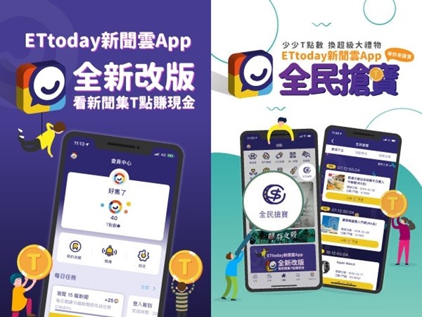 新聞雲App用戶注意到了嗎!又到了App更新的時間囉!從11月4日起新聞雲App新功能更新超有感!會員中心集T點功能再升級,只要每天登入App完成五大任務,天天集點換好禮,還有不定時在「全民搶寶」遊戲中出現彩蛋大獎等你來下注!立即拿起手機更新新聞雲App,把獎品賺回家!