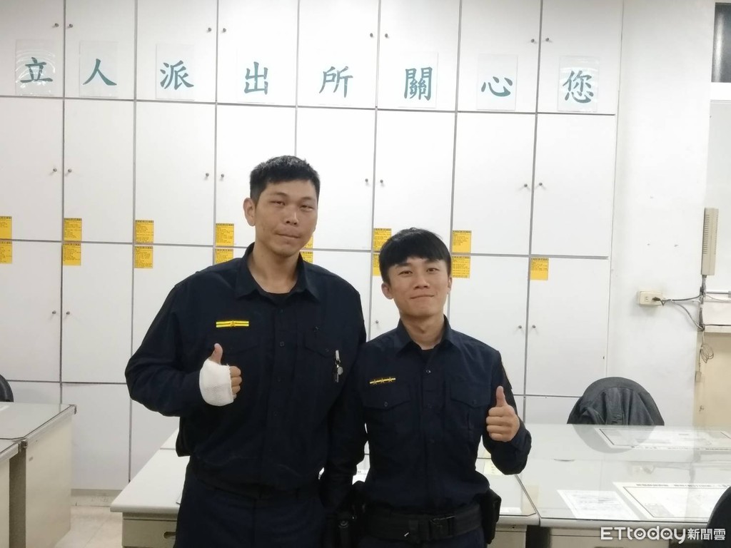 ▲台南市警五局立人所所長陳俞宏、警員陳柏偉等奮勇救人,受到家屬感激。(圖/記者林悅翻攝)