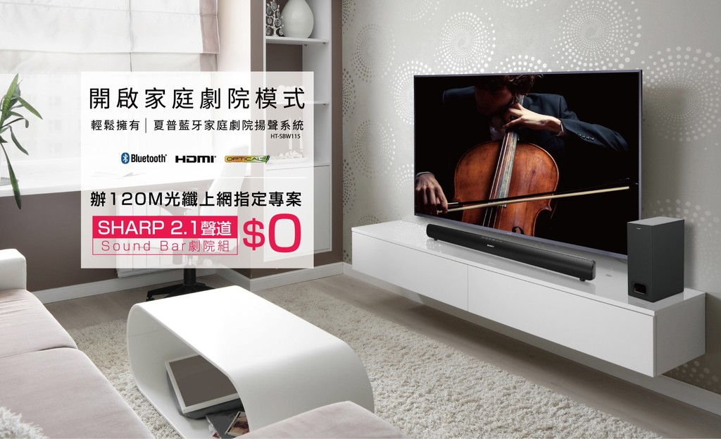 為了讓有線電視與OTT用戶的家庭視聽娛樂體驗再升級,即日起新申辦凱擘大寬頻120M(含)以上光纖上網指定方案,月付1,199元起就能一次享有高速穩定的光纖上網服務、上百台數位有線電視及HD99高畫質套餐的24台高畫質數位頻道內容,不僅可以免費升級搭配凱擘新推出的A1 Box及藍牙聲控遙控器,還能以0元優惠價帶走SHARP最新Sound Bar劇院組,再加碼送機上盒myVideo豪華月租3年免費看到飽,給全家人最完整的優質視聽享受,打造專屬家庭劇院體驗。