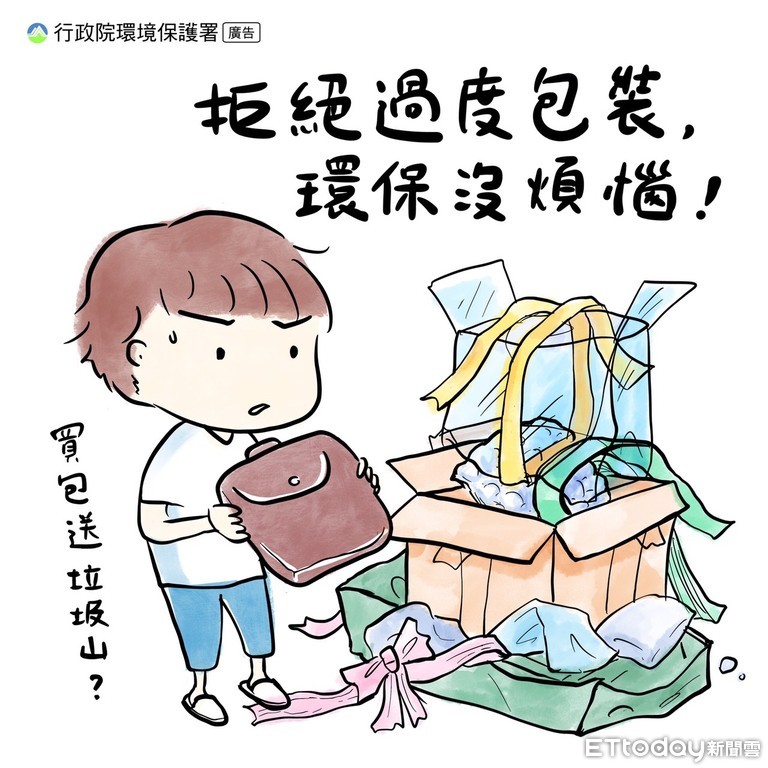 環保局長林淵淙說明,環保署為降低網路購物包裝箱(袋)的使用,於2019年特別規劃制定「網購包裝減量指引」,授予12個網購平台「網購包裝減量標章」,包括有PChome線上購物、蝦皮24h、momo購物網、Yahoo奇摩購物中心、Yahoo奇摩超級商城、博客來、生活市集、PChome商店街、神腦生活、台塑購物網、IKEA、台糖易購網,期許業者環保減量意識的加強,也讓民眾可挑選更具環保概念、不浪費包裝材的優質網購商品。