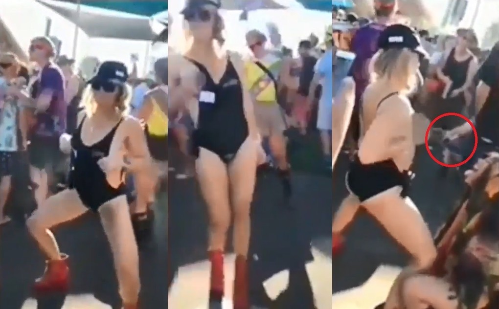 綜合外媒報導,南加州一個露營地(Dirtybird Campout)在10月份舉行一場EDM電音派對,吸引大批群眾參加。其中,一名媽媽身穿黑色緊身泳衣、戴著帽子及太陽眼鏡,並配上一雙紅色短靴,隨著音樂瘋狂跳舞。