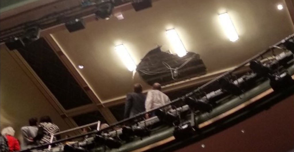 報導指出,41歲記者馬丁喬治(Martin George)當時就在現場,演出開始10分鐘後,劇院傳出輕微滴答聲,引得觀眾四處張望,幾分鐘後滴答聲愈加頻繁,「聽起來像水從天花板滴下來」,接著有人開始移動,最後聲音大到大家都起立離開,就在這時,約3至4公尺的天花板就從天而降。