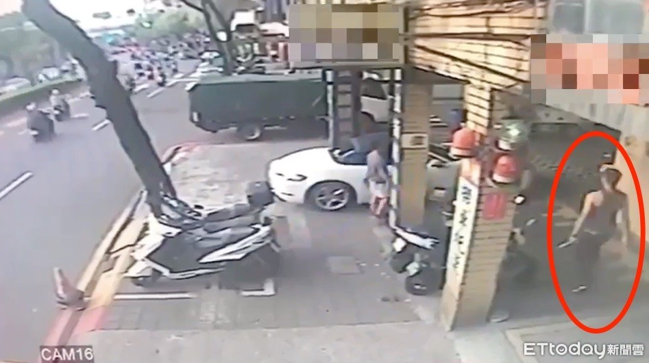 ▲4名持刀惡煞衝進洗車場,朝鄭姓男子砍殺。(圖/記者陳以昇翻攝)