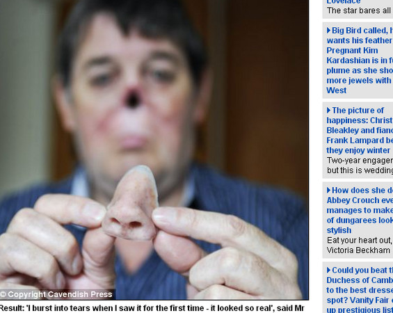 據英國《每日郵報》報導,科學家根據原有的鼻子製作一個玻璃模具,再注入類似蜂巢的合成物質,讓幹細胞可以提供一個依附的支架;這個蜂巢式結構上面覆蓋著數百萬個幹細胞,借助於合適的營養物質,讓它們能發育成鼻子的軟骨。