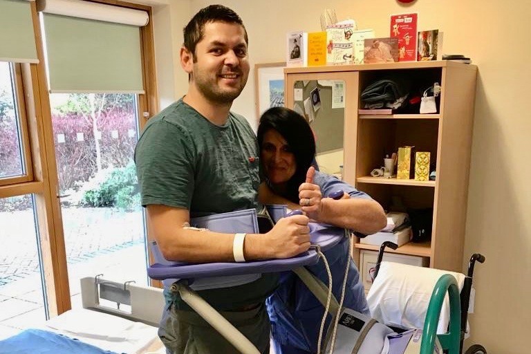 傑克森曾是風浪板(Windsurf)的好手,他向Metro表示,雖然還沒有完全康復,但能夠再次走路,已經非常感激,為了感謝復健中心的照顧,計畫在生病1年以後,參加5公里的「迷你馬拉松」,以此為目標,在募資平台GoFundMe為這一間優質的醫護中心募款。