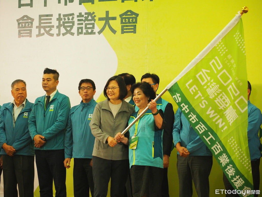 蔡英文下午3點抵達台中競選總部,為競選連任百工百業暨婦女後援總會會長授證,包括總統府秘書長陳菊、立委何欣純、黃國書、張廖萬堅和洪慈庸等人出席,現場吸引上千人參加,凍蒜聲不斷。