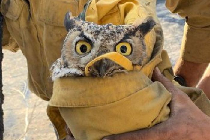 美國加州不久前發生森林大火,文圖拉郡(Ventura County)是受災地區之一。大批消防員上周六(2日)前往救火時,發現一隻貓頭鷹困在火場無法逃生。