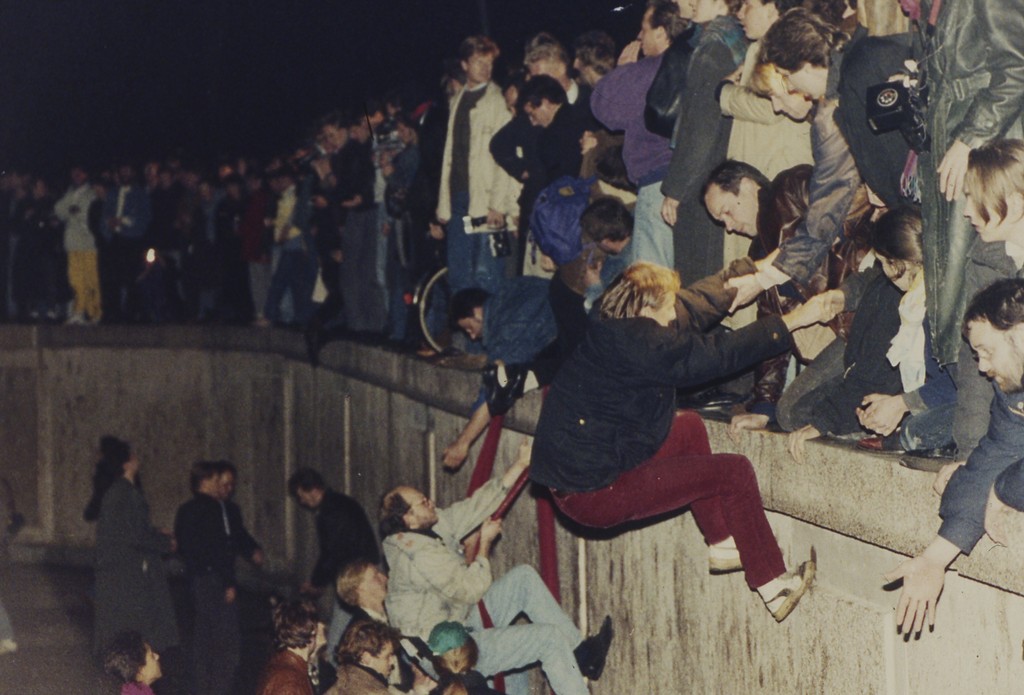 ▲1989年11月9日當晚,西柏林人幫助東柏林人爬過圍牆。(圖/達志影像/美聯社)