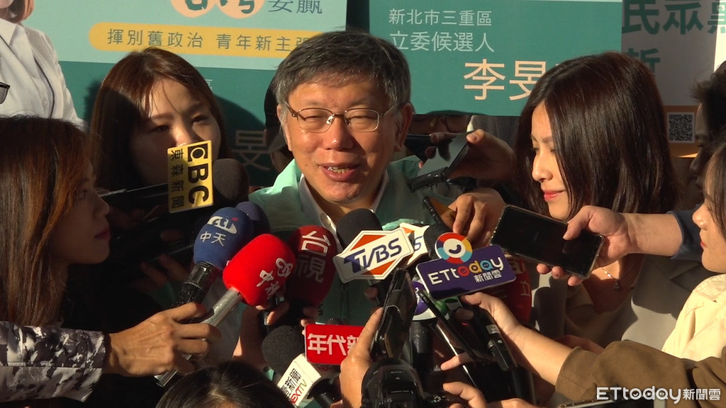 ▲柯文哲陪同李旻蔚赴三重跳蚤市場掃街拜票。(圖/記者黃國霖攝)