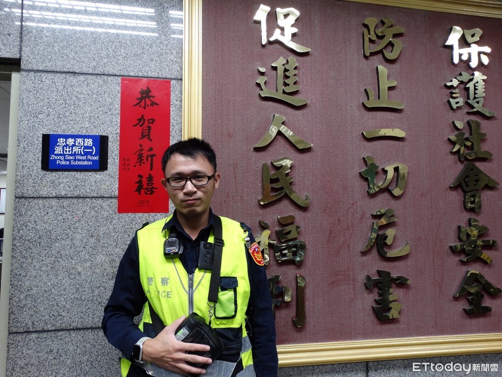 ▲北市中正一警分局忠孝西路派出所警員林庭緯,協助陸客找回遺失在計程車上的行李。(圖/記者張君豪翻攝)