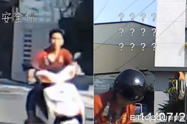 一名女網友日前收到家人傳來的影片,當時他們開車行經南投小巷,結果對向騎士過彎超車,被嚇到摔倒;重點是,原本他明明沒戴安全帽,但起身後,出現在鏡頭前的他竟「戴好戴滿」,畫面曝光後讓大票網友看呆,就連承辦員警也笑到不行。