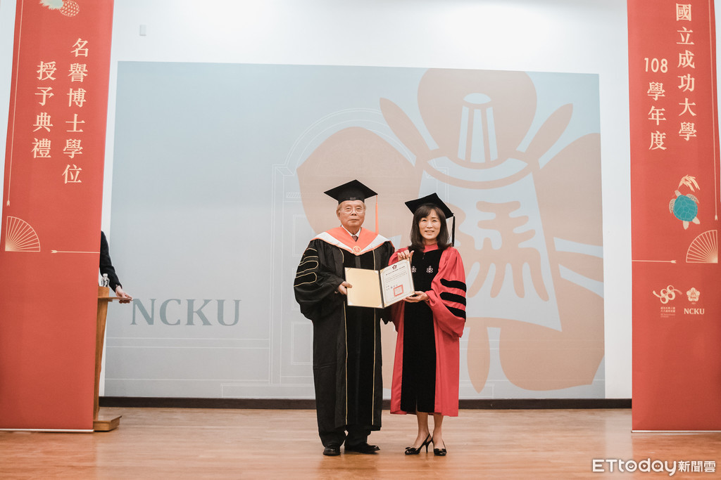 ▲成功大學11月11日校慶舉行108學年度名譽博士學位授予典禮,授予台灣石化合成公司董事長吳澄清先生(左)名譽工學博士學位。(圖/記者林悅翻攝)