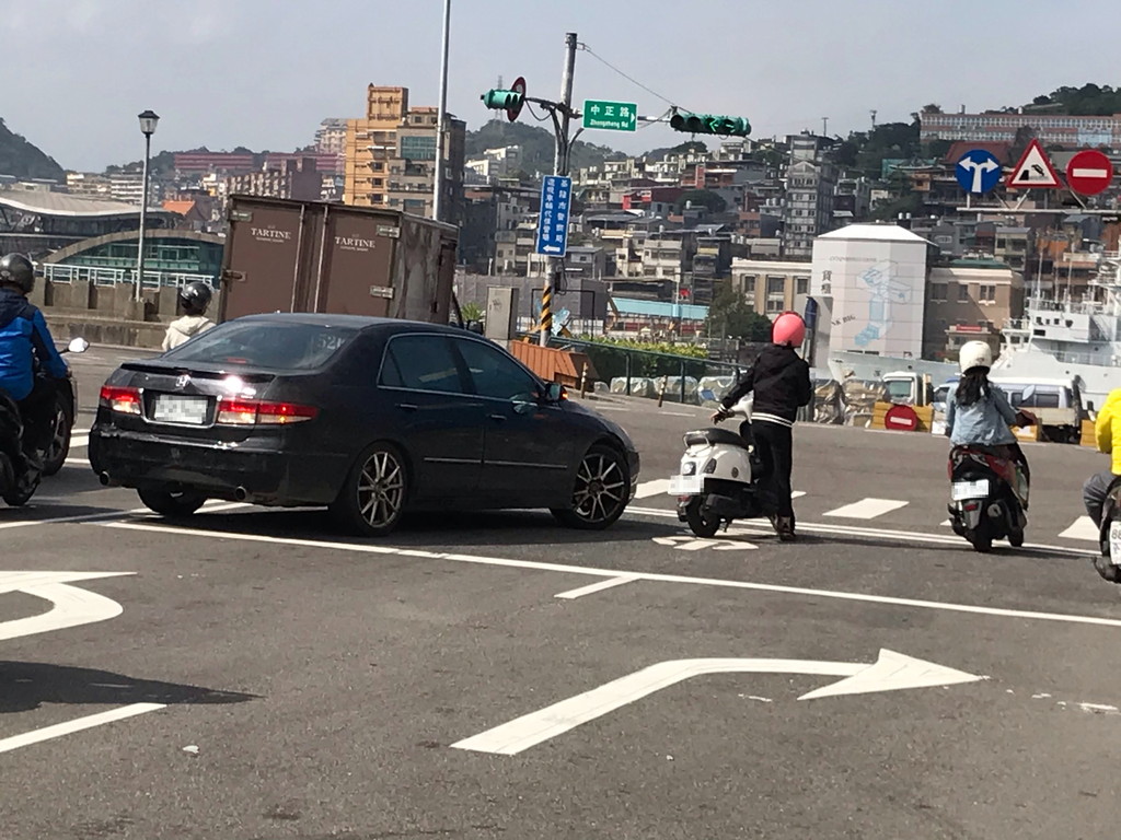 基隆市信一路靠近文化中心路段共有4線道,每個車道路面上,都有繪製行車方向。現場目擊民眾表示,原本黑色轎車行駛在內側左轉車道時,駕駛突然車往右轉急切,與準備左轉女機車騎士發生擦撞。女騎士當下舉起手朝向汽車的引擎蓋連續猛敲數下,女騎士下車找轎車駕駛理論後,雙方才各自離開現場。