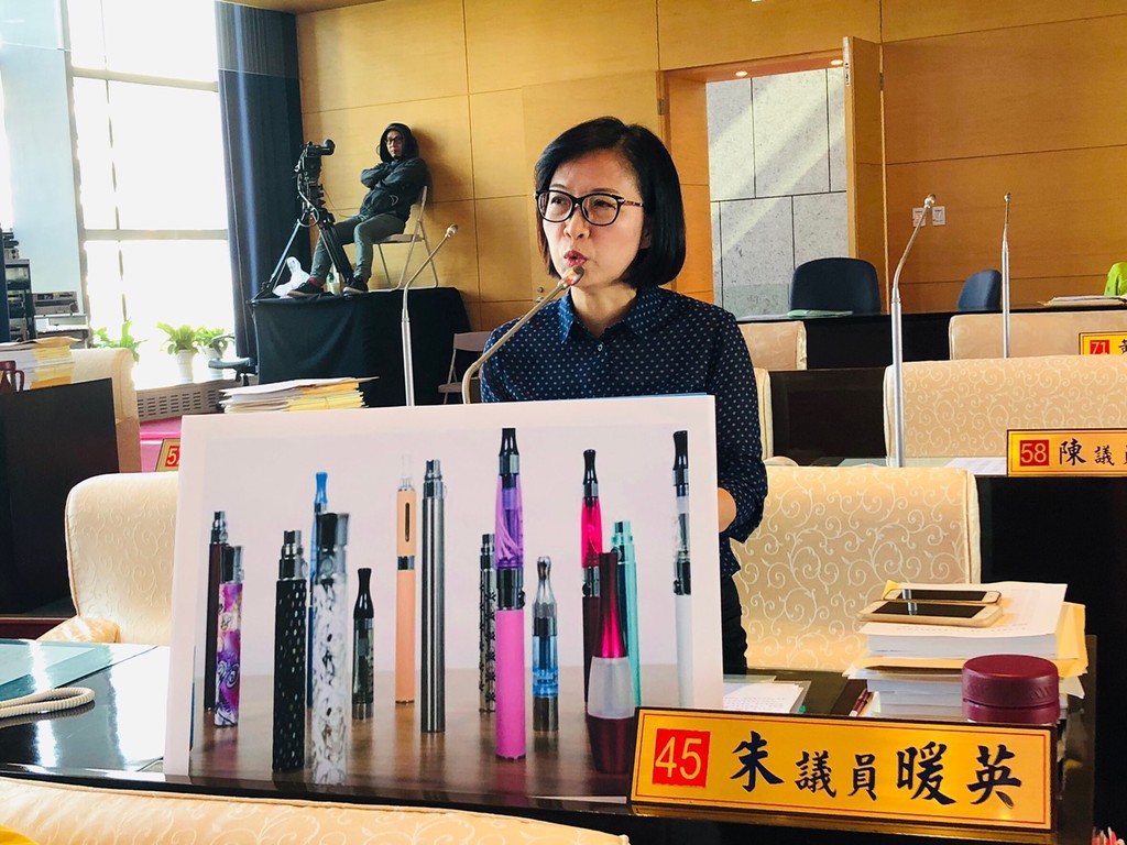 她語重心長指出,根據國民健康署統計,台灣有3.8萬名國高中生有使用過電子煙的經驗,從2014年到2018年高中職生吸食率,從1.9%攀升至3.5%,變得愈加氾濫,電子煙中的水果香料口味的菸油,在菸害防制法中並不屬於「菸品」定義範疇,所以目前無法可管,在中央立法完成納管之前,市府應該負起宣導和防範之責。