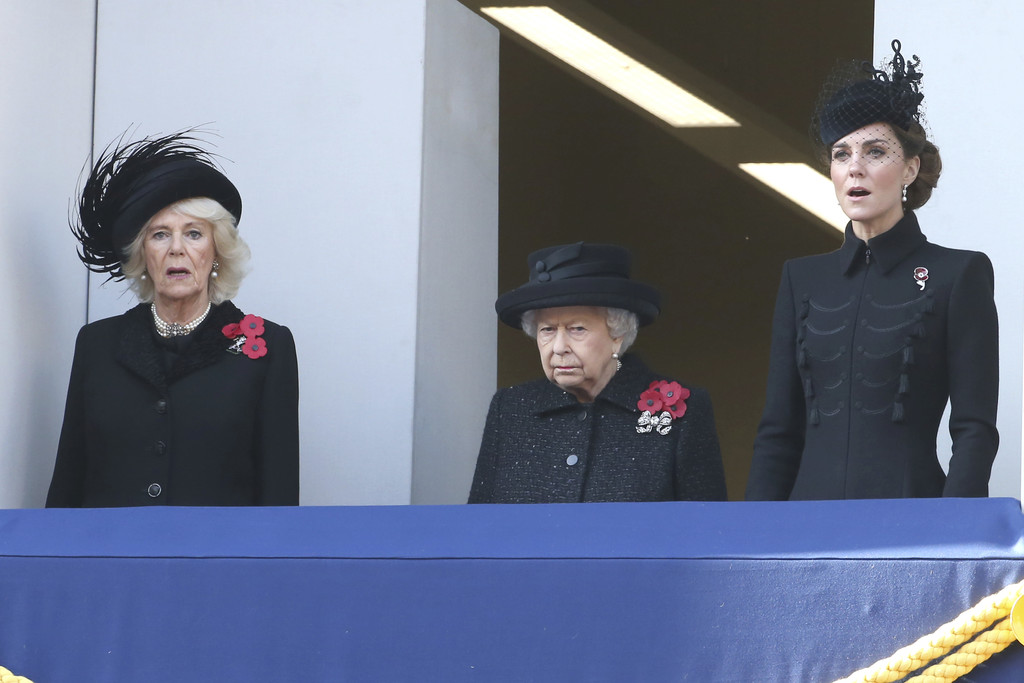▲ 2019年11月10日,英國女王和凱特王妃出席倫敦舉行的國殤紀念日(Remembrance Day)。(圖/達志影像/美聯社)