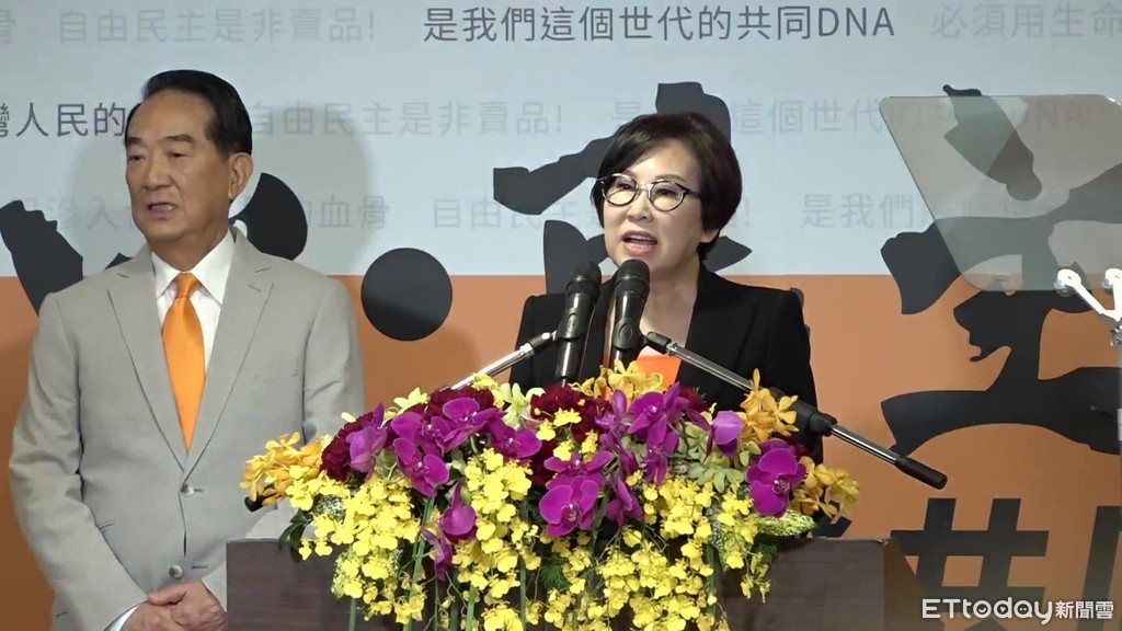 親民黨主席宋楚瑜13日宣布參選2020總統,副手敲定由有廣告之母之稱的前聯廣董事長余湘擔任,知名主持人于美人則接下親民黨發言人職務,宋楚瑜今日穿著淺灰西裝搭配橘色領帶出席。余湘致詞時證實,10月28號,她與宋楚瑜見面,主席力邀她參與2020的總統大選,「我則力勸主席,不要參加這場毫無勝算、吃力不討好的選戰」, 經過無數次的懇談及交換意見,最後才被宋楚瑜說服。