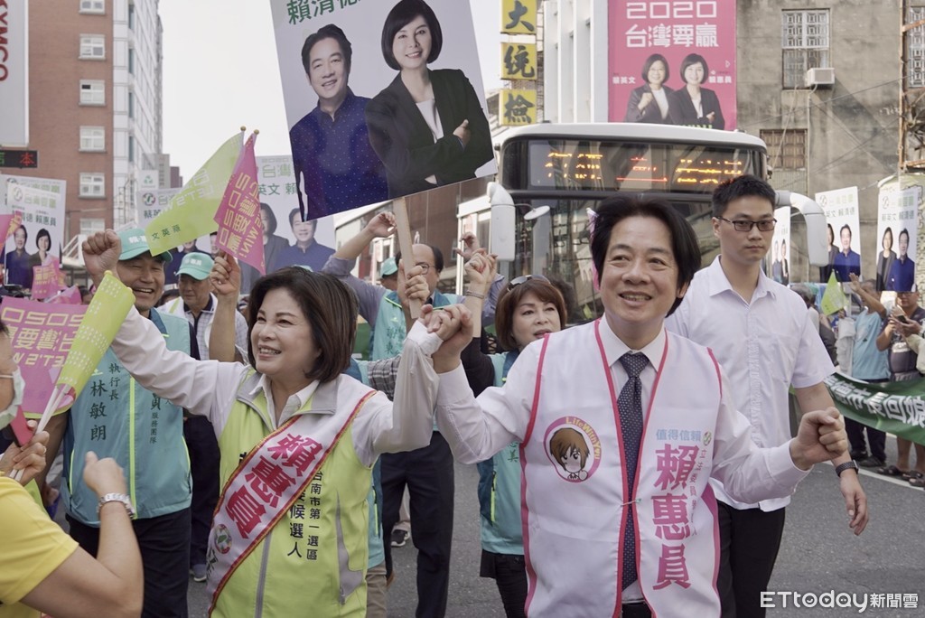 前行政院長賴清德,13日回到台南新營,站上宣傳車與民進黨立委參選人賴惠員一同以車隊在新營鹽水等地區遊行掃街拜票,並前往歷史悠久的太子宮參拜,除了為全民祈求平安,也為國家前途祈福。大批支持者在太子宮廟埕等候,鄉親高舉蔡英文、賴清德合照看板,夾道歡迎賴清德到來,高喊「凍蒜!」表達對「蔡賴配」的支持,現場氣氛熱絡。