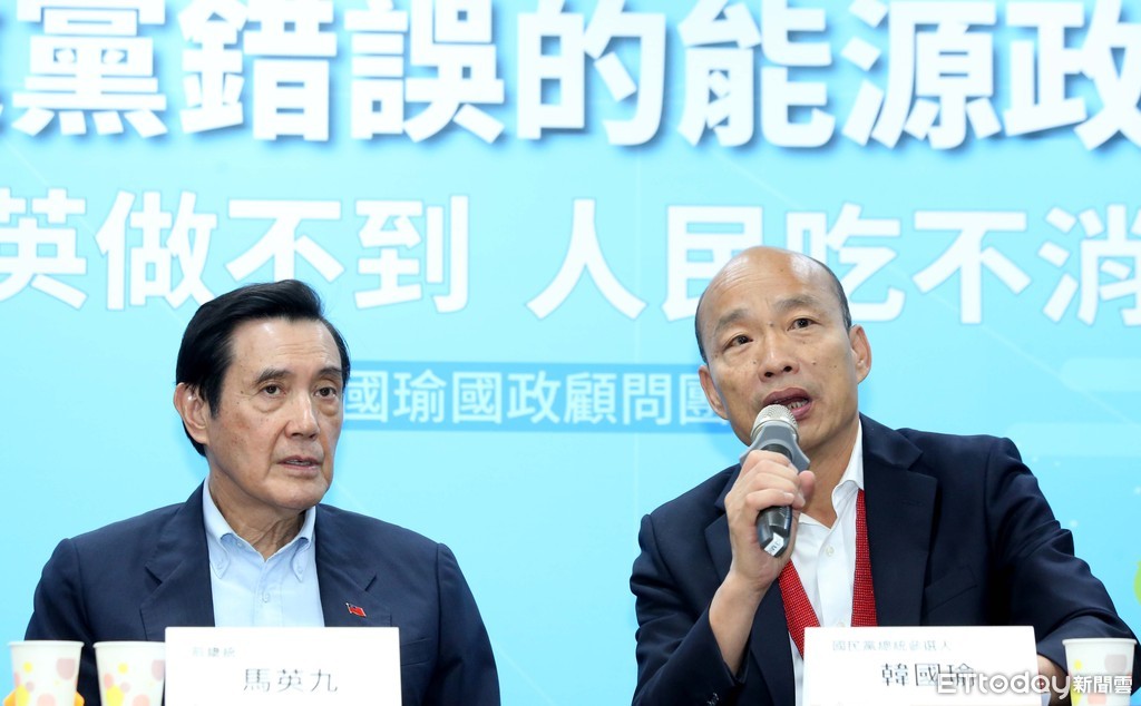 ▲韓國瑜、馬英九同框出席「蔡英文錯誤的能源政策記者會」。(圖/記者屠惠剛攝)
