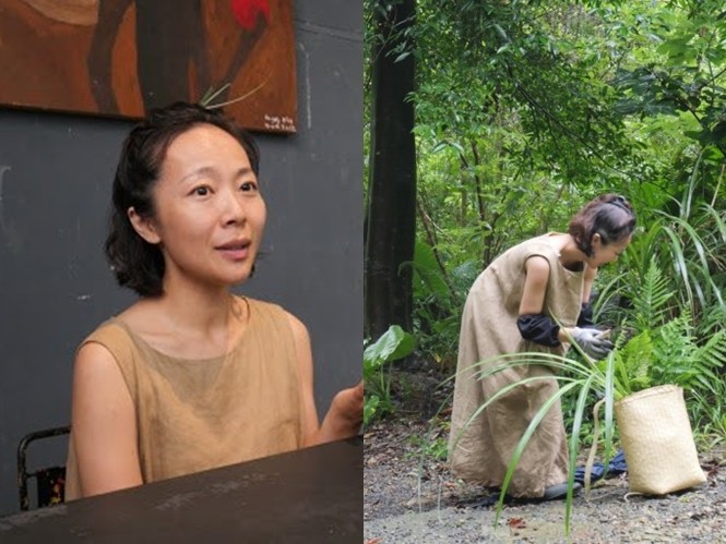 這天的專訪為了配合草肉實堂主理人張葦葦的佈展前期工事,特別選在少少原始感覺研究室進行,這裡是一個位在城市與自然交界的半開放的溫室空間。依稀記得那日下著小雨,空氣中混雜了點泥土潮濕的清新,蝸牛、毛蟲等各式昆蟲們也都趁著這時相約大夥出來透透氣。那時葦葦剛從採集的路上回來,身穿著一襲簡約的無袖連身長裙,提著竹編籃、腳踩著雨鞋,頭上還髻著一葉驅蚊用的香茅。