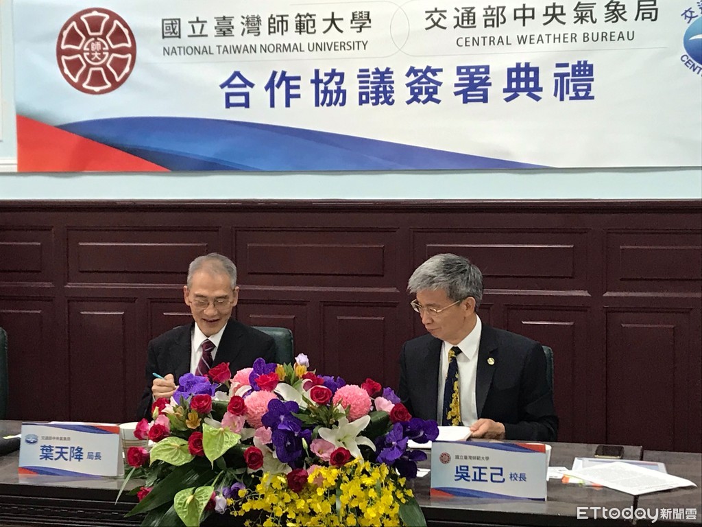 國立台灣師範大學與交通部中央氣象局今(14日)由校長吳正己及局長葉天降簽署合作協議,透由該合作引進及開發先進氣象技術,共譜科技研發、教材設計、人才培育、史料探索及科普跨域應用5大合作願景。