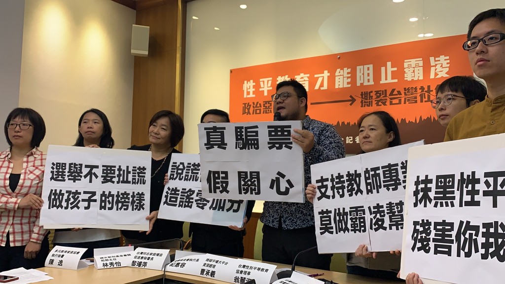 國民黨總統候選人韓國瑜夫人李佳芬日前指控國小課本教「肛交、性高潮」惹議,而韓陣營近日仍持續透過似是而非的訊息,加深民眾錯誤認知與恐懼,引發許多團體不滿,今(14)日多個公民團體召開記者會,反對政治惡意操弄來傷害性平教育,重申性平教育才能阻止校園霸凌,另外強調「性教育」也不等於「性交教育」,「別將全國父母對孩子的愛,當成你們的超商提款機。」