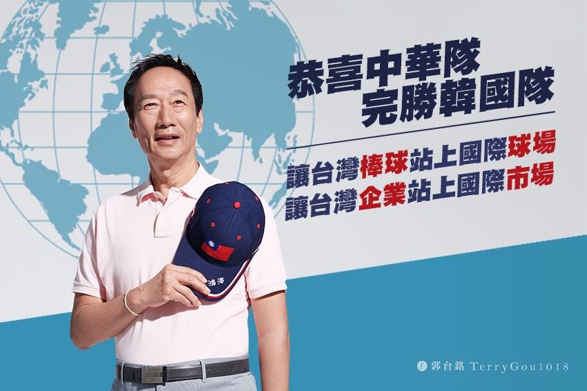 ▲郭台銘臉書恭喜中華隊完勝韓國。(圖/翻攝郭台銘臉書)