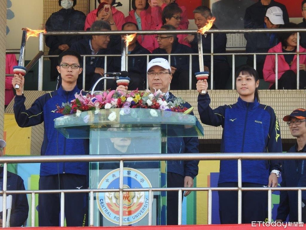 ▲ 警大第38屆校運會熱力登場,內政部長徐國勇主持開幕典禮點燃聖火。(圖/內政部提供,下同)
