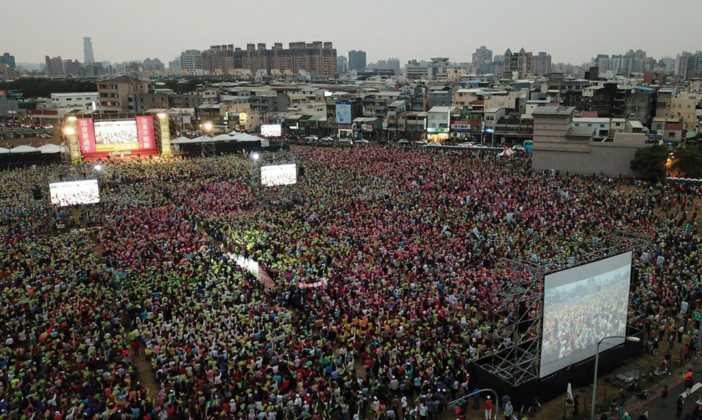 2020總統立委大選倒數55日,爭取連任的總統蔡英文終於找到「最強副手」賴清德,將在17日召開記者會對外公布。16日晚間,蔡英文高雄競選總部成立,蔡賴兩人先合體,吸引超過10萬名支持者湧入會場力挺。造勢晚會空拍圖曝光,滿滿人潮超震撼,10萬高雄人齊聚怒吼要「光復高雄」。