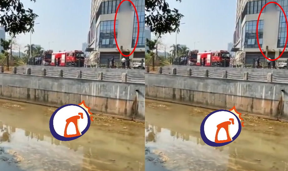 ▲大樓外牆留下一道長長的血痕,而死者頭顱掉入河中。畫面中警消已撈起頭顱。(圖/翻攝《南方都市報》)