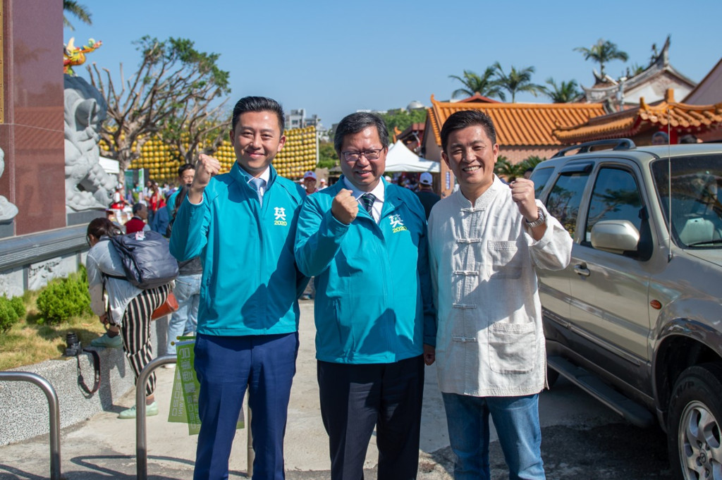 ▲桃園市長鄭文燦(中)、新竹市長林智堅(左)17日均到場力挺鄭宏輝。(圖/鄭宏輝競選辦公室提供,下同)