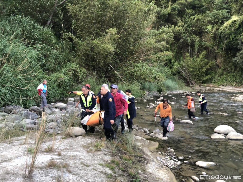 ▲救難人員由上方垂降,消防局人員由下往上攀升,共同把失蹤者下放至河床。(圖/記者黃孟珍翻攝)