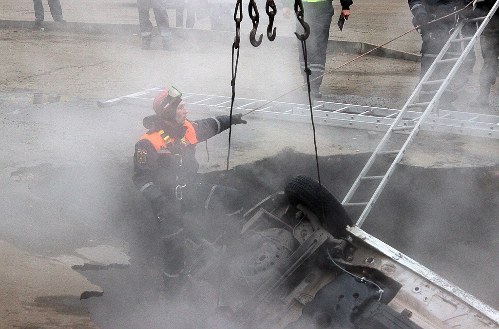 俄羅斯南部城市奔薩(Penza)發生一起可怕的事故,在一處停車場內,熱水管線爆炸,一輛車子直接掉進大坑洞裏面,車內兩名男子當場被攝氏75度的熱水燙死。目前當局還未公布死者身分,正在調查詳細的事故原因。
