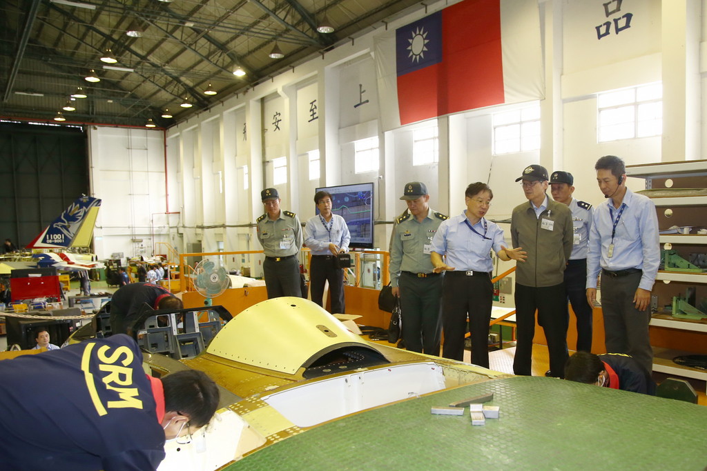 ▲國防部長嚴德發訪視漢翔公司,實地巡視新式高教機研製生產情形。(圖/國防部提供)