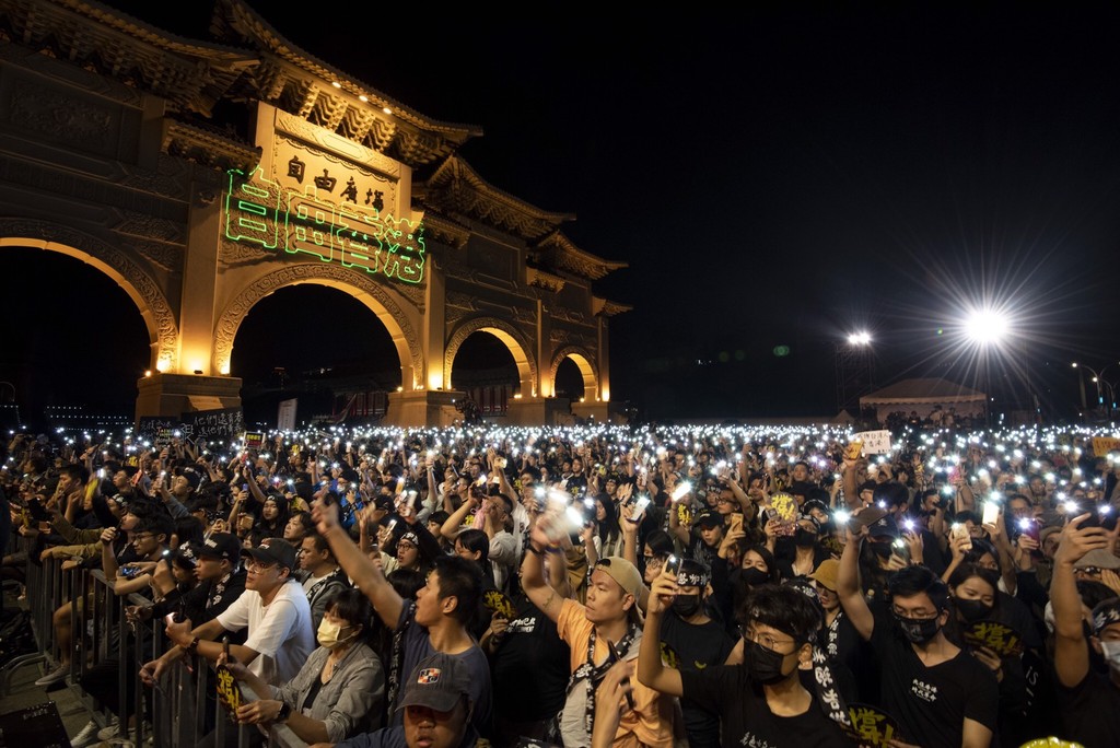 ▲「撐香港!要自由演唱會」17日晚間在自由廣場舉行,吸引逾2萬民眾參與。