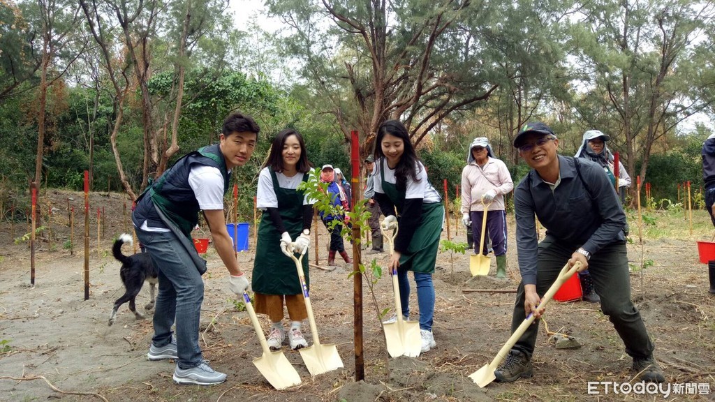 ▲▼台東林管處與韓國美妝公司合作公益植樹,與該公司員工、小馬社區居民及成功工作站同仁栽植200株海岸樹苗。(圖/台東林管處提供,下同)