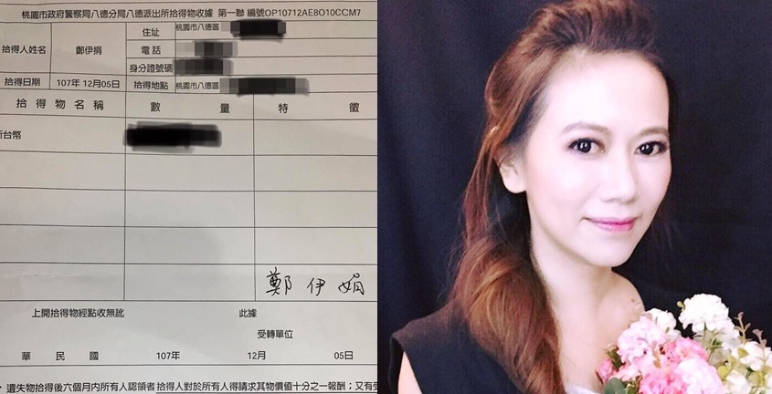 由於鄭伊娟去年在在桃園市的某國小當老師,12月5日傍晚回家途中,突然一陣狂風吹來,眼前飄下3張千元紙鈔,由於當下沒有人出面認領,於是她趕緊拿去八德派出所報案。但是至今過了1年,19日在教師晨會時,八德警局突然打給她要她去認領這些錢,最後她便在臉書上分享這段經歷,認為「我們對孩子的教育一定要誠實」。