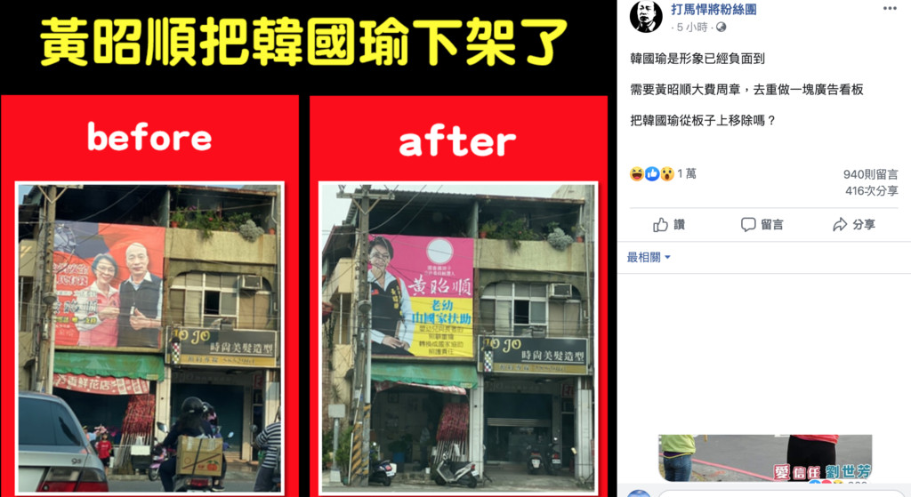 ▲黃昭順廣告看板看不到韓國瑜,遭酸抓到了! 。(圖/翻攝《打馬悍將粉絲團》)