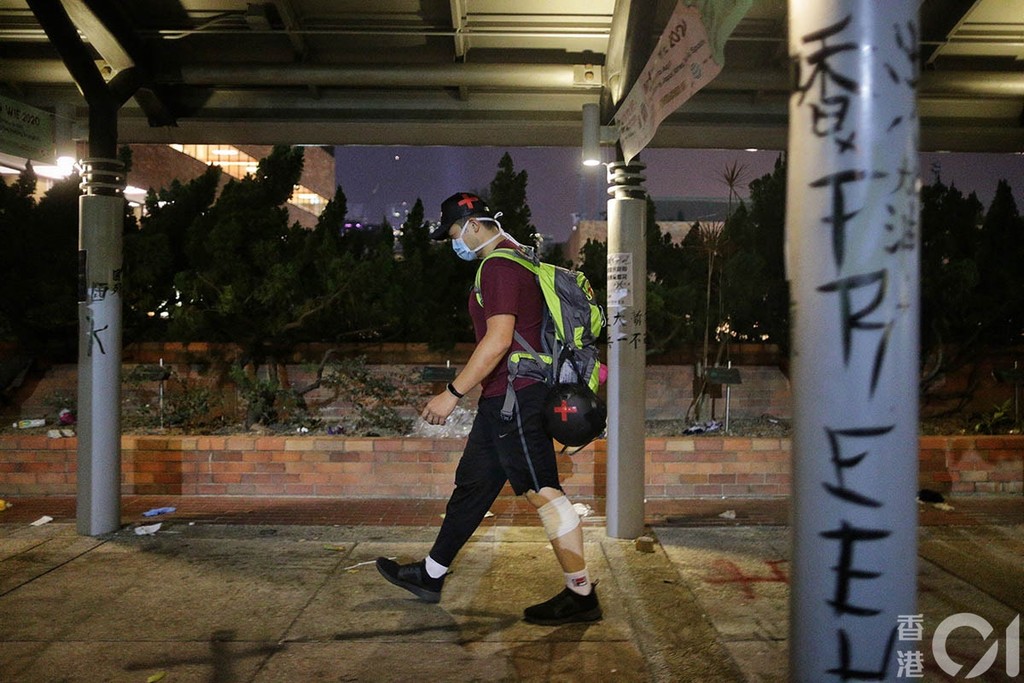 他又説留守示威者的傷痕,不只有身體,而有心靈,「還有100多人在裏面,他們很絕望、軟弱,有點撐不住。我唯有寄語『堅強點』。在此刻,有些年輕人連我們救護都信不過,有需要不敢出聲,信任度很低。」