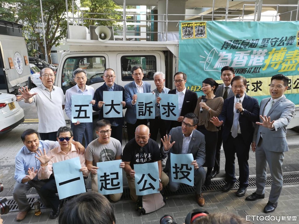 ▲香港民主派議員21日於政總外舉行記者會。(圖/記者游宗樺攝,下同)