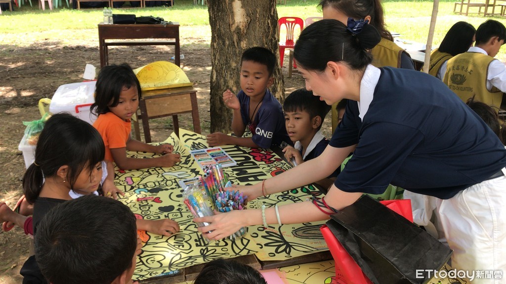 王宣方在出發前買了許多全開紙裁切,並且畫出黑匡圖案讓孩子們可以著色,每一張都可以「愛的串連」,更另外準備100張白紙,希望讓小孩們可盡情創意、揮灑他們生命的彩筆,王宣方指出,這次不同國家的愛心人士一起聚集到馬德望,也希望孩子們用顏色添加馬德望的色彩,讓每一張圖畫增加不同的溫度。