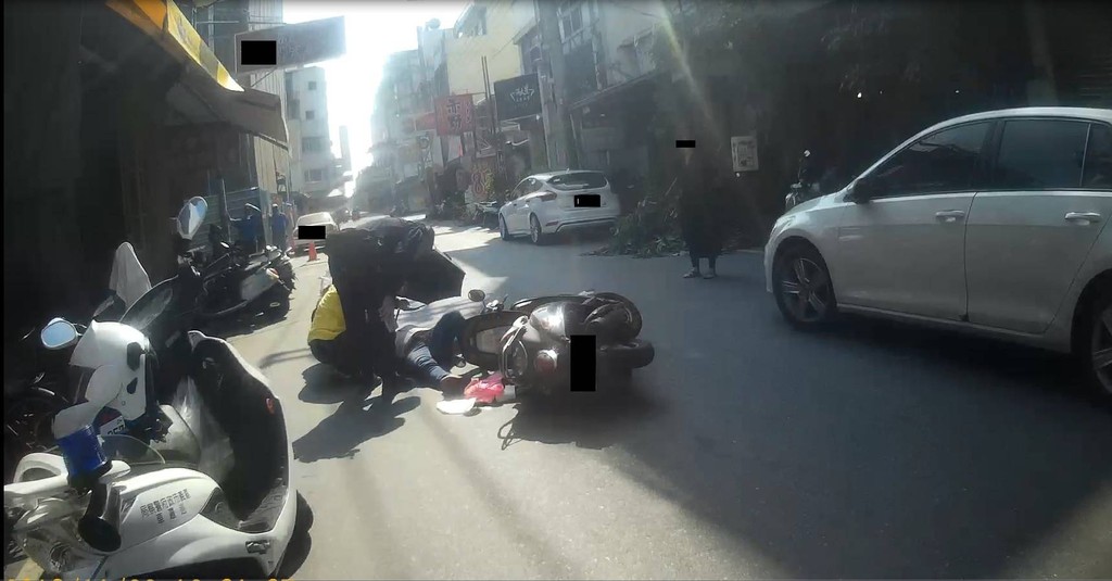 ▲▼ 汽車駕駛未二段式開門,後方機車騎士撞上車門跌倒,痛苦不堪。(圖/讀者提供)