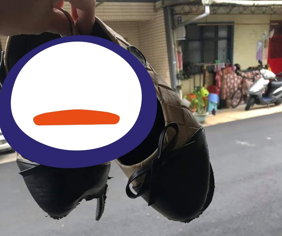 只見圖中,娃娃鞋的鞋頭不僅已經爛掉,其中一隻鞋的鞋底還整個消失,秒變透視款式,還可以看到對面鄰居家的樣子。媽媽強調,女兒每次都是穿一次就變這樣,讓她心已死,以後絕對不再買娃娃鞋了。